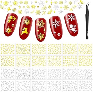 24 Blatt Weihnachten Nagelaufkleber, Schneeflocke Nagelsticker Selbstklebend Nail Art Sticker Nagel Abziehbilder für Mädchen Frau (Gold, Silber)